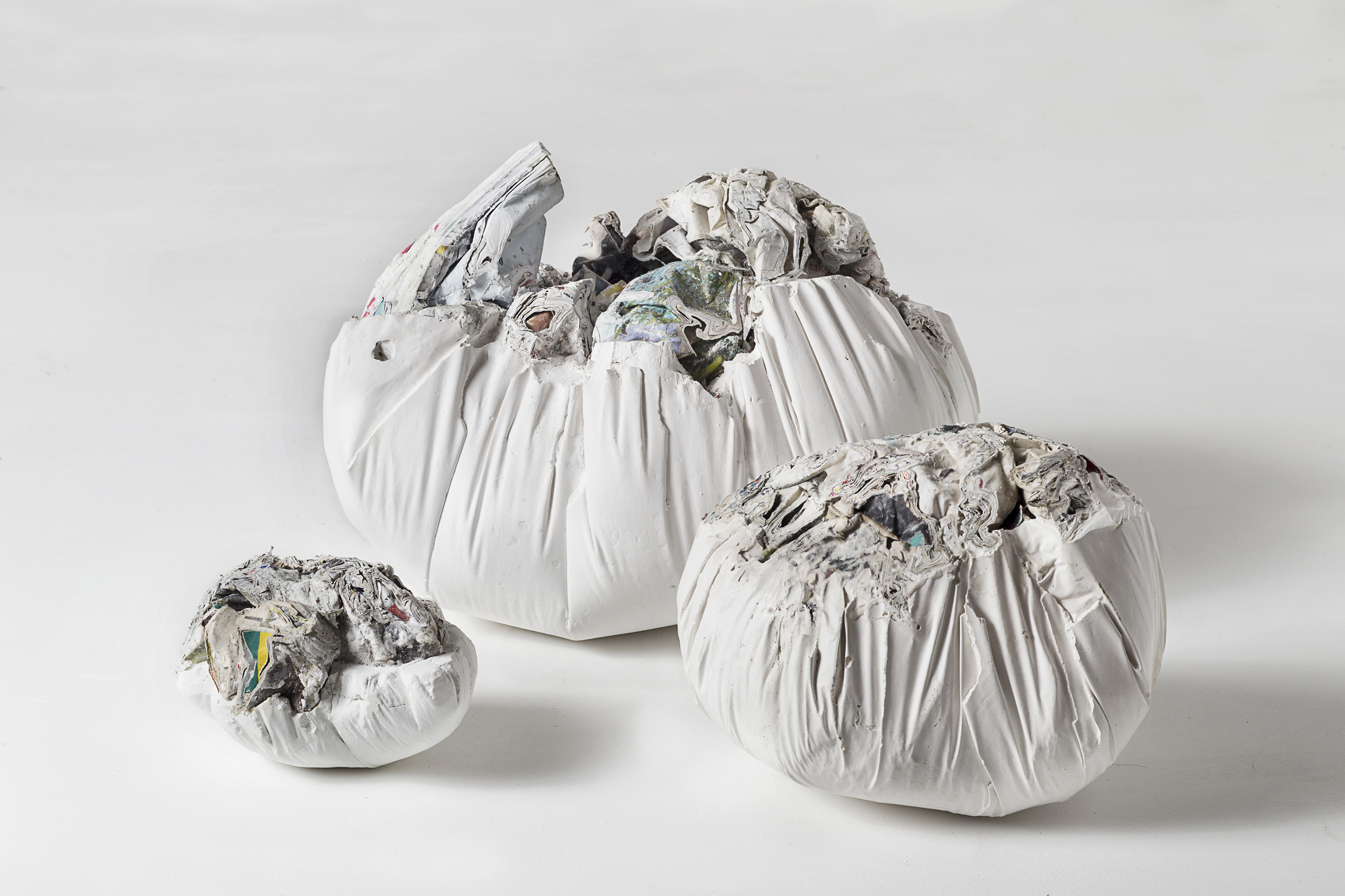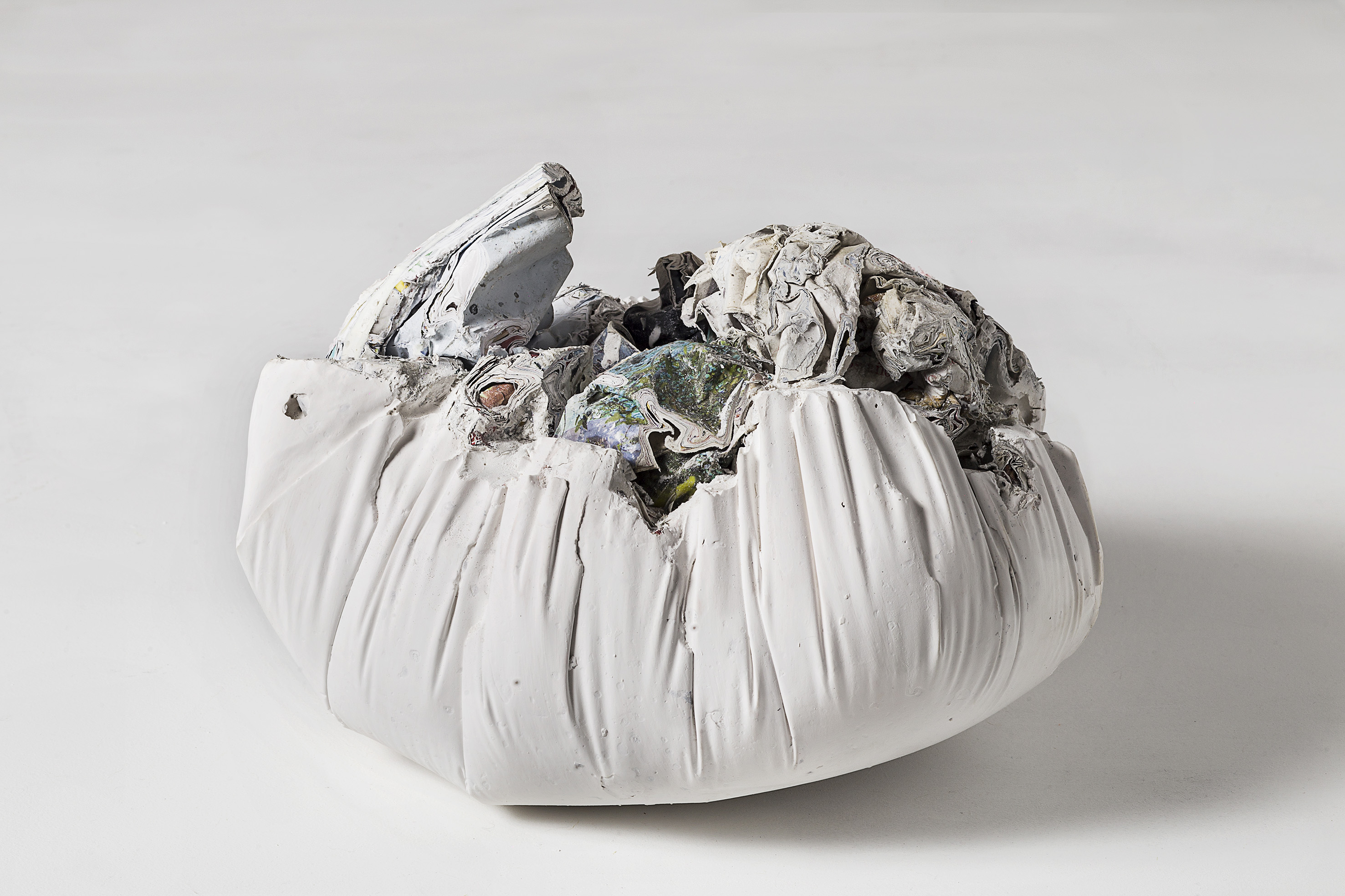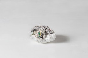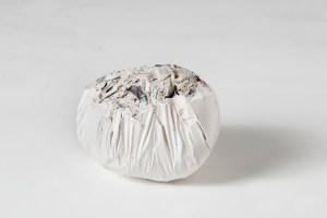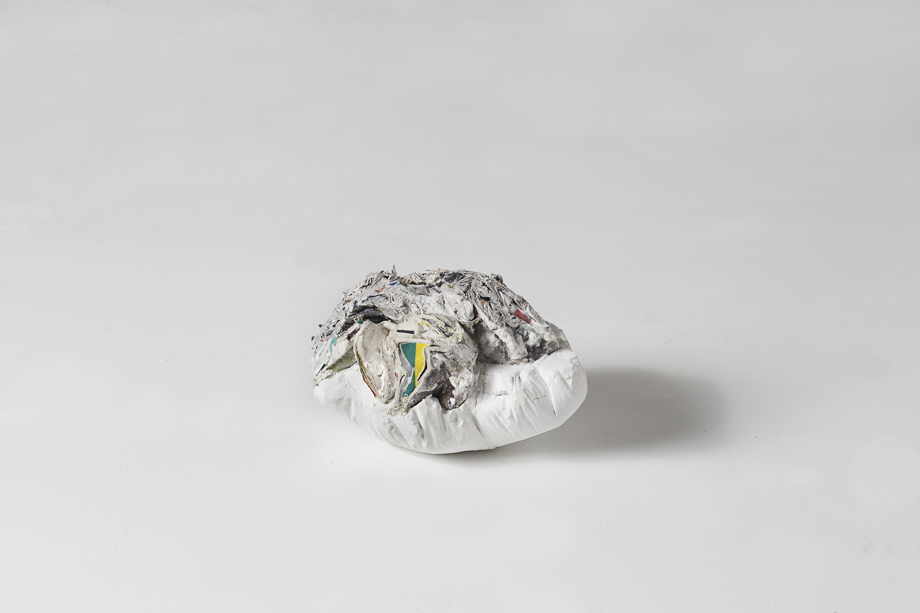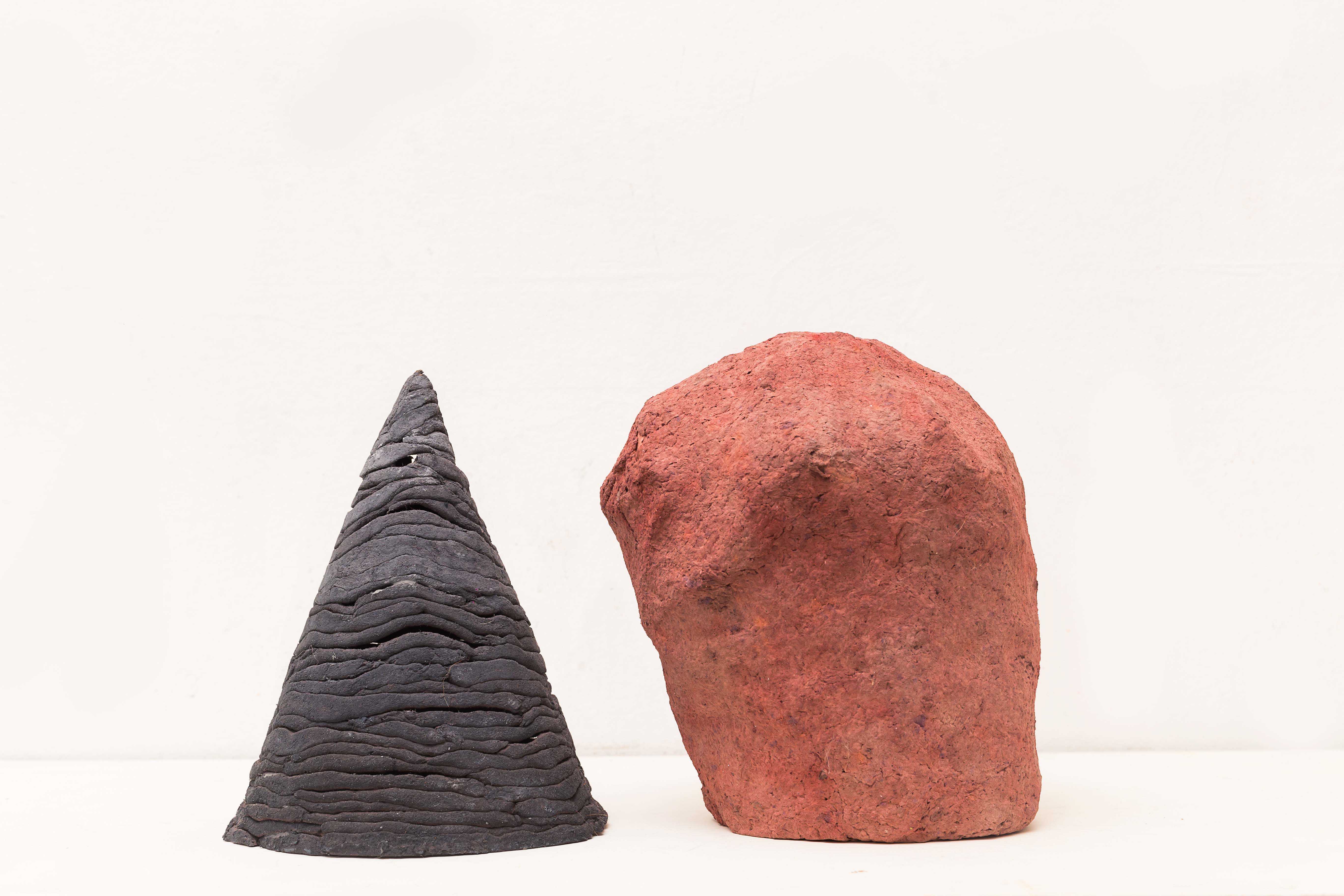 Obstáculo. Papel y óleo. 70x50x50cm. aprox. 2016 Piedra. Papel y pegamento. 20x20x25cm. 2017