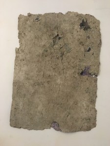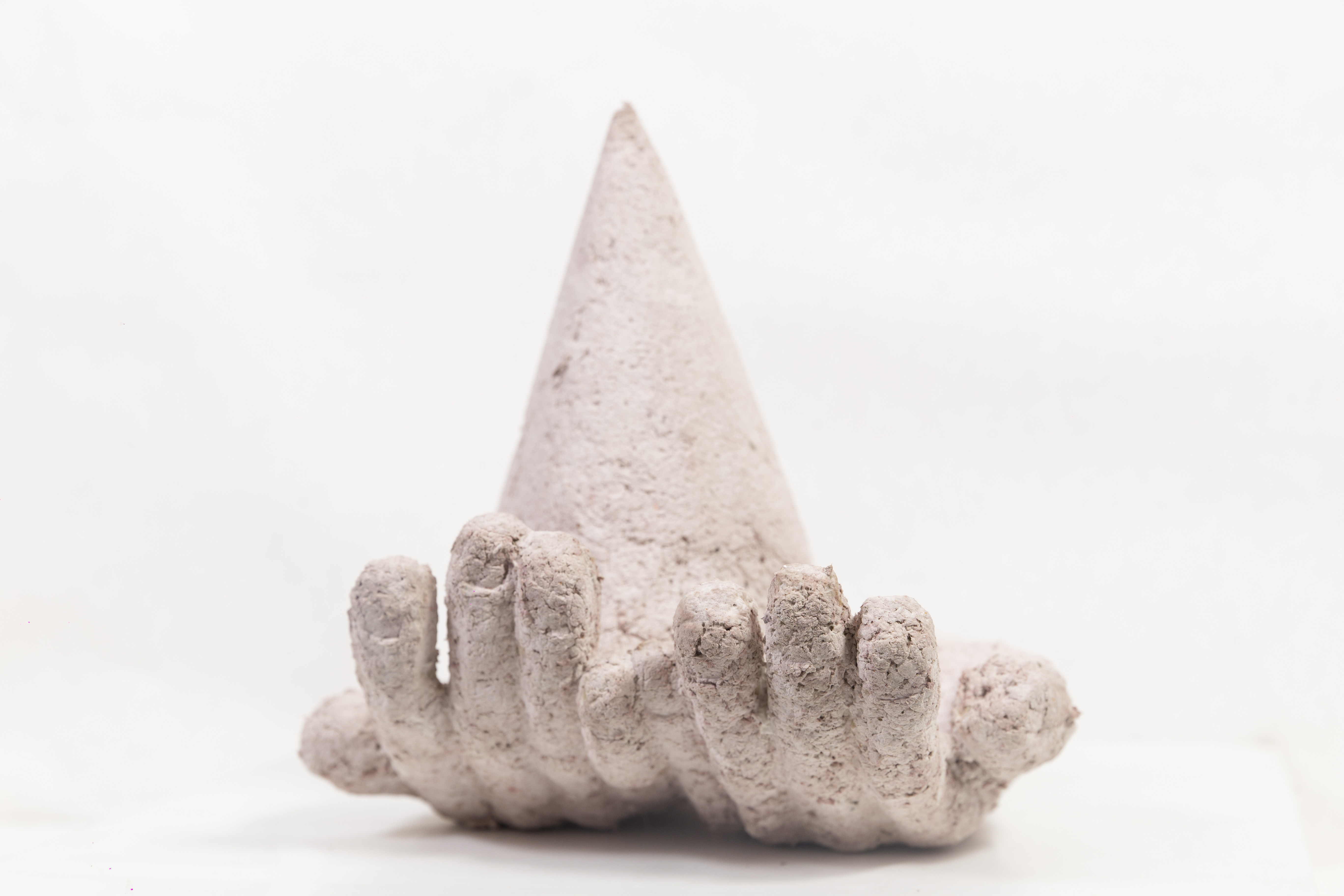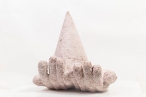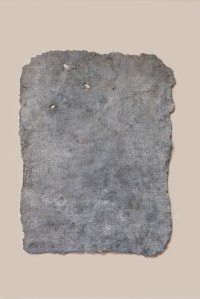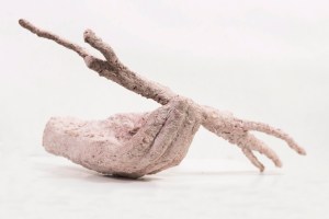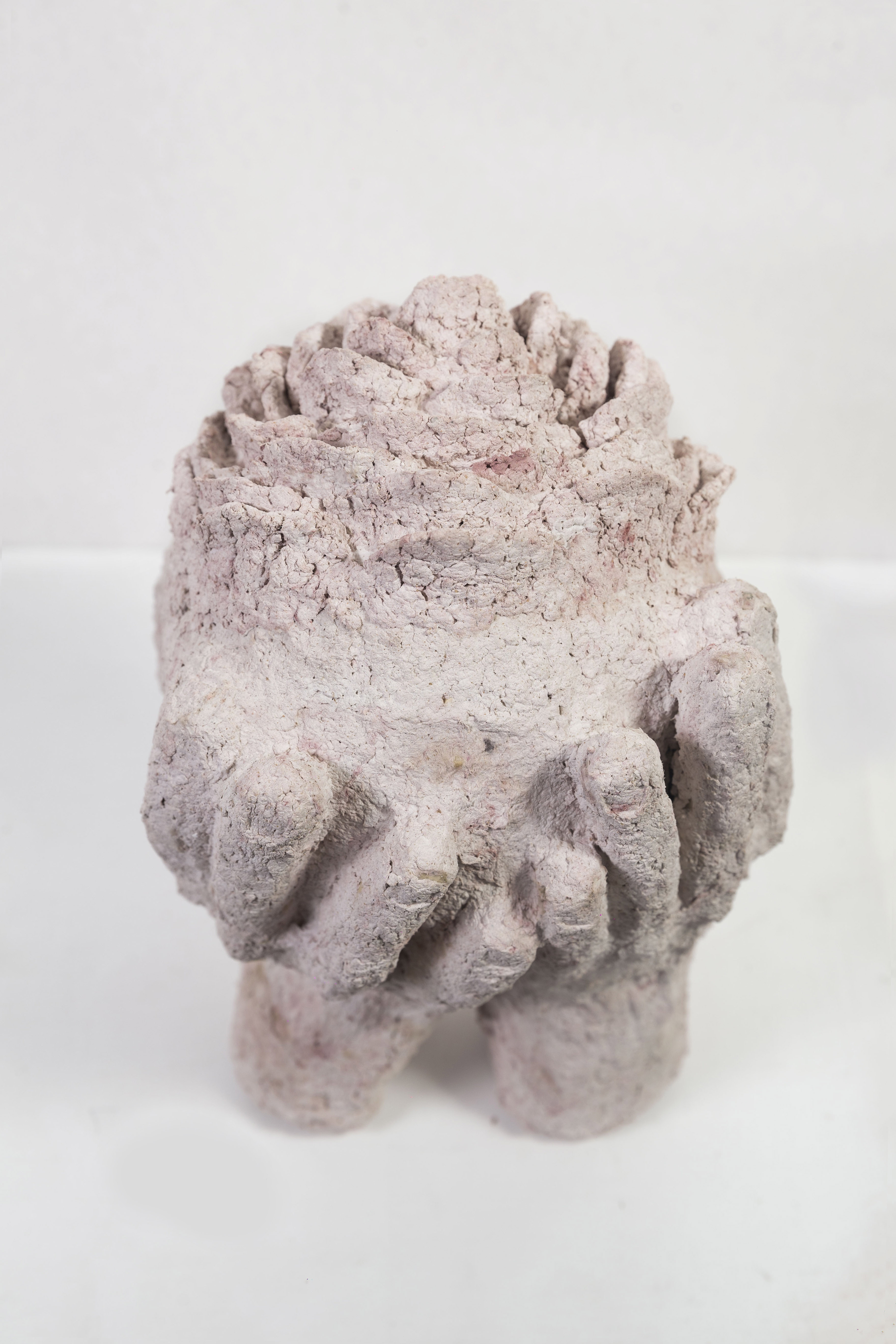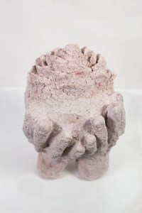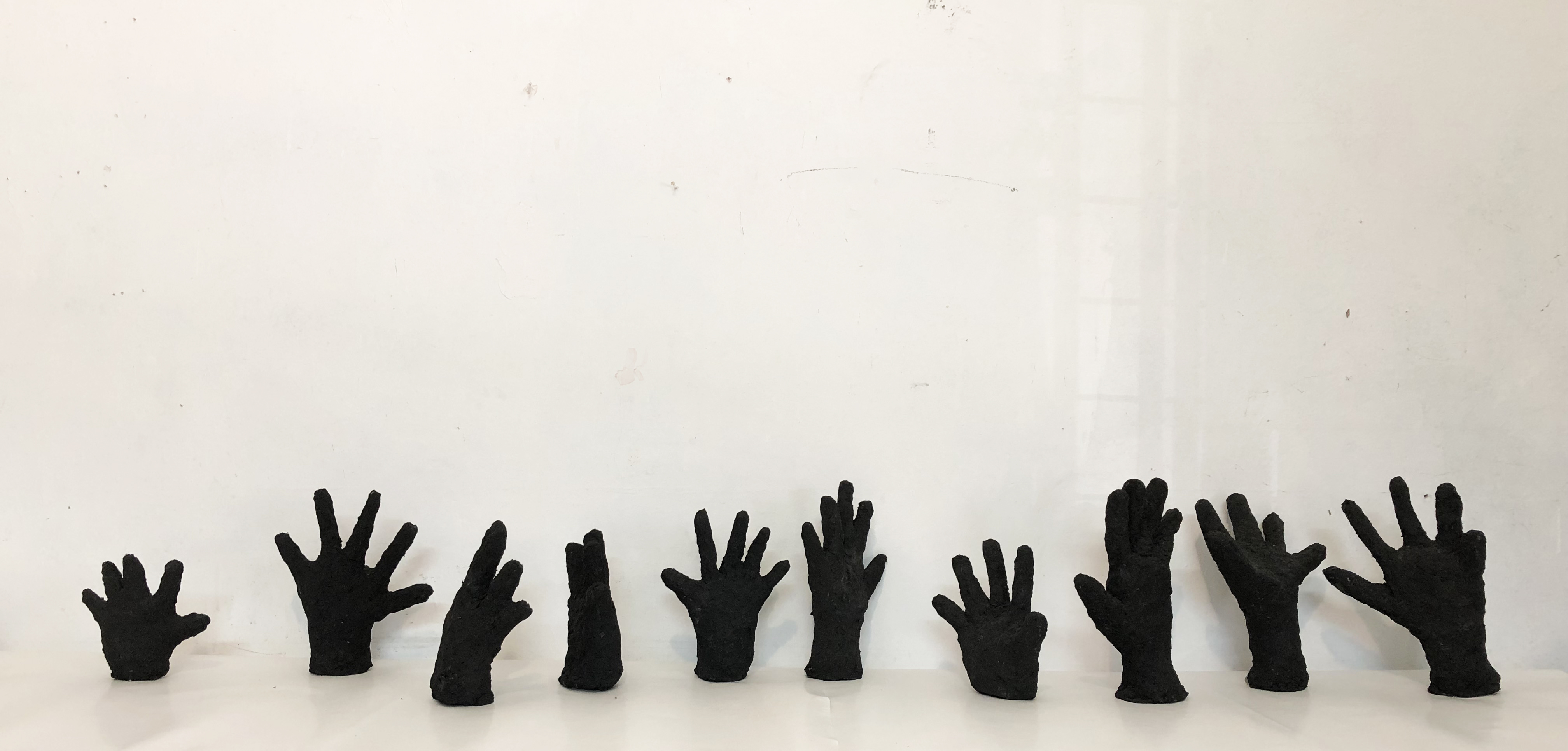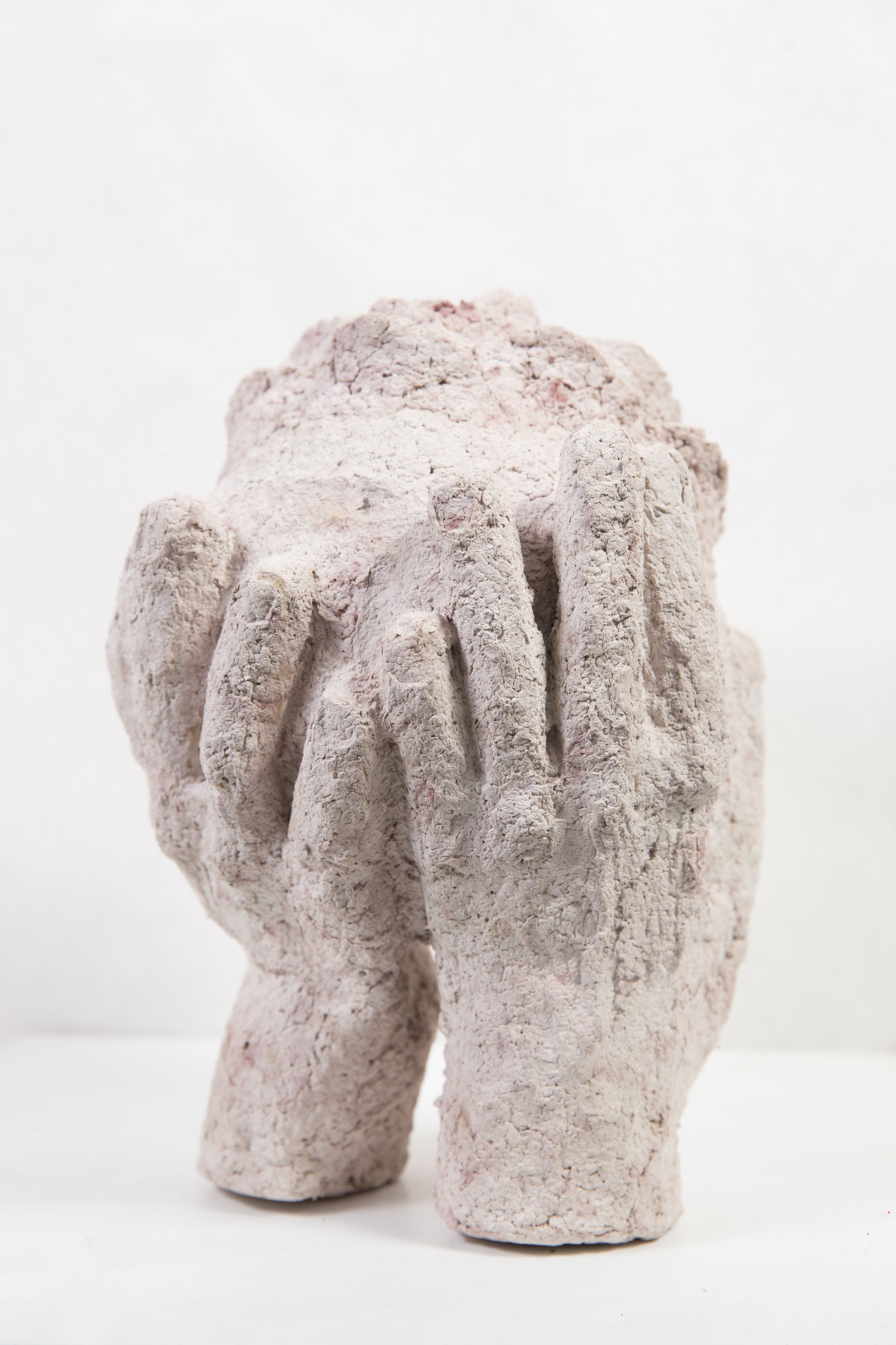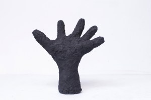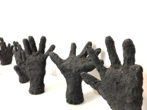 Manos. Pasta de papel, cemento y ferrites. 2019