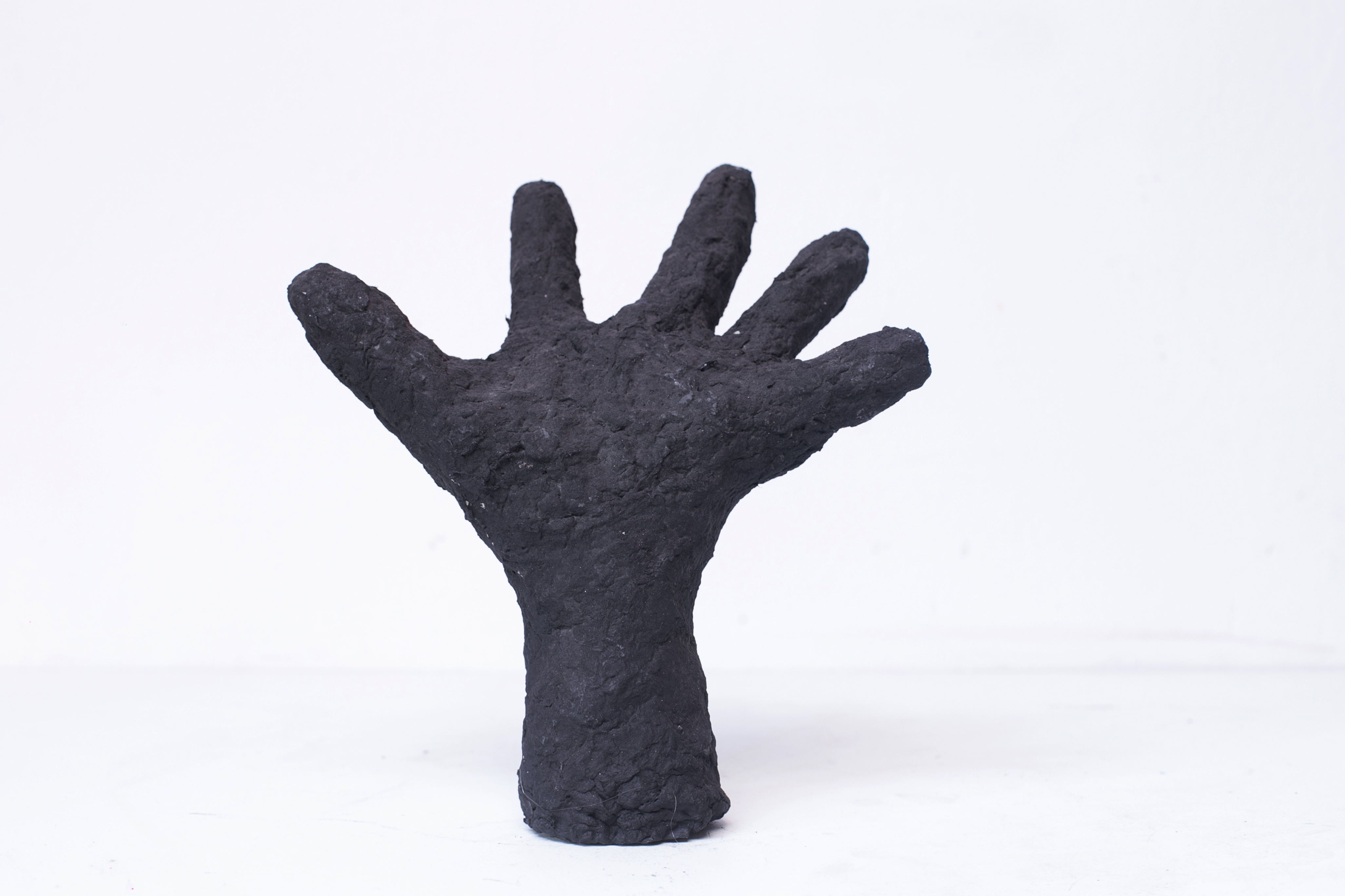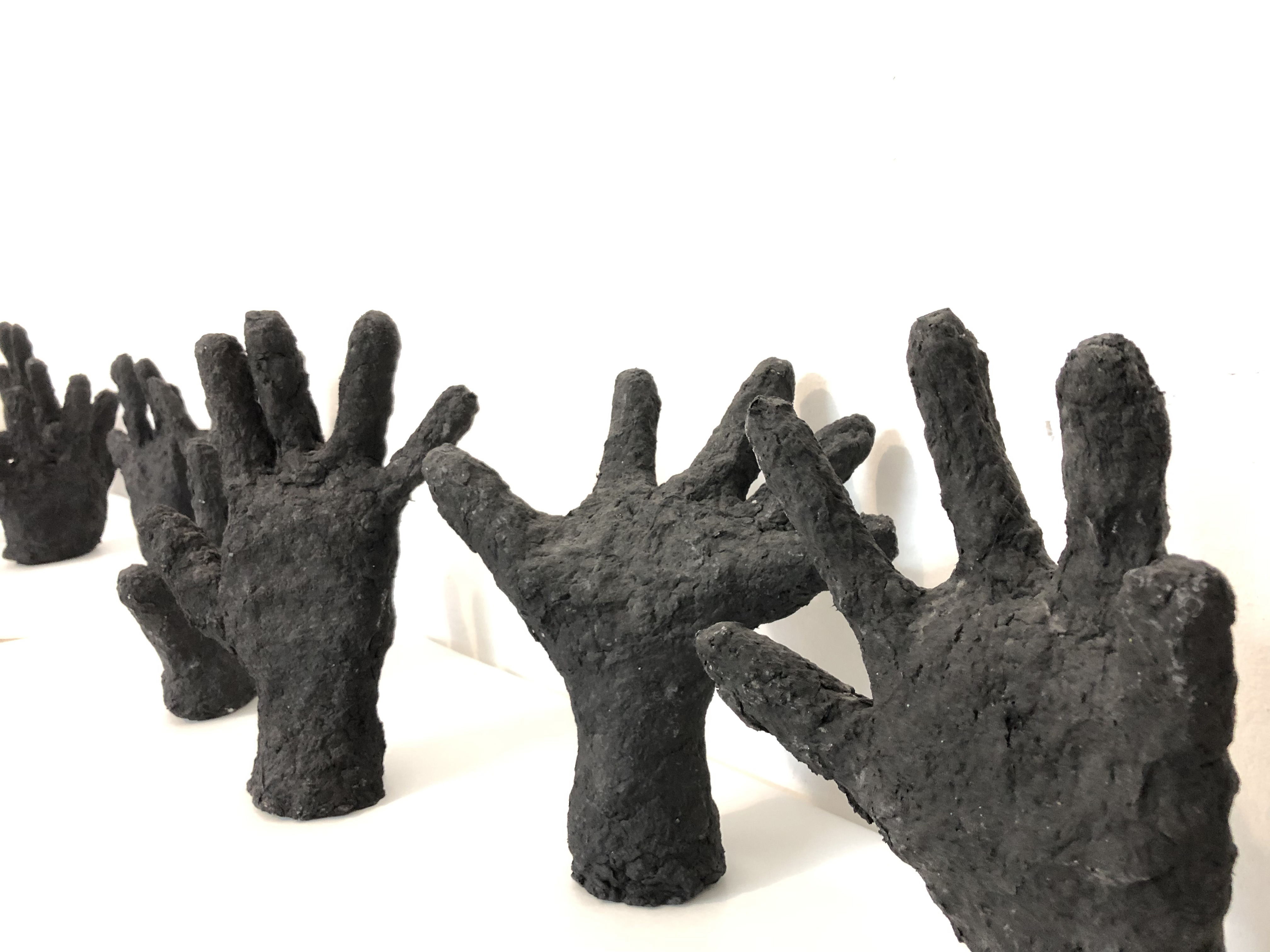 Manos. Pasta de papel y ferrites. 2019